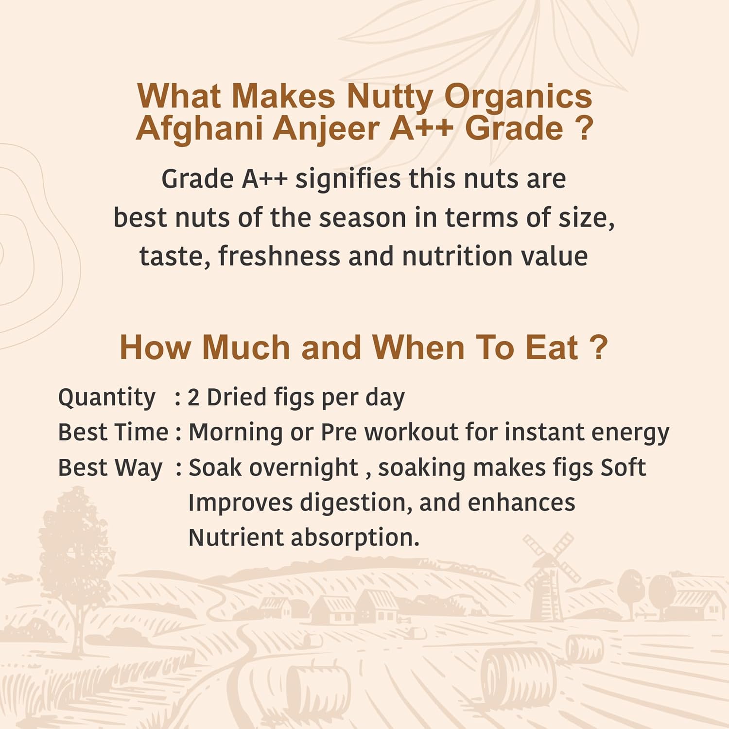 - NUTTY ORGANICS Premium Dried Afghani Anjeer is a naturally sweet and nutrient-dense snack, offering a healthy and delicious way to boost your daily nutrition.