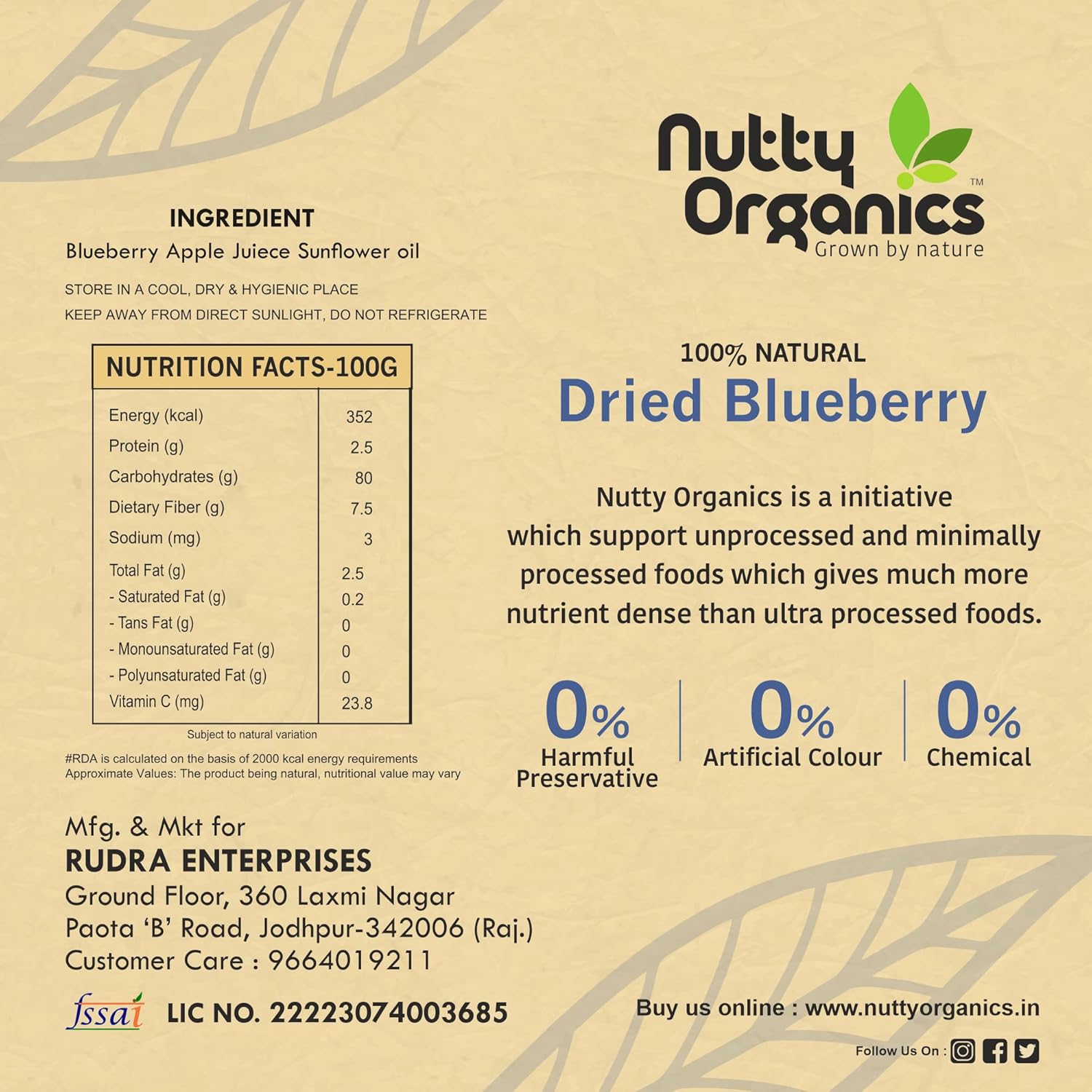 Experience the natural sweetness of Nutty Organics Dried Blueberries, made with care to provide you with a pure, healthy, and guilt-free snack. With no refined sugar and no additives, these dried blueberries are a wholesome treat perfect for all ages. Whether you’re looking for a quick snack, a topping for your cereals, or a natural ingredient in your recipes, our blueberries deliver an authentic burst of flavor and nutrients. Each 100Gpack is carefully sourced and prepared to ensure freshness and quality. Enjoy these 100% natural dried fruits, packed with antioxidants, vitamins, and fiber, for a nutritious boost any time of the day. Free from artificial preservatives, Nutty Organics Dried Blueberries are the ideal snack for anyone seeking a healthy, on-the-go option without compromising on taste. Suitable for kids, adults, and health-conscious individuals, this product is the perfect way to indulge in the goodness of nature.