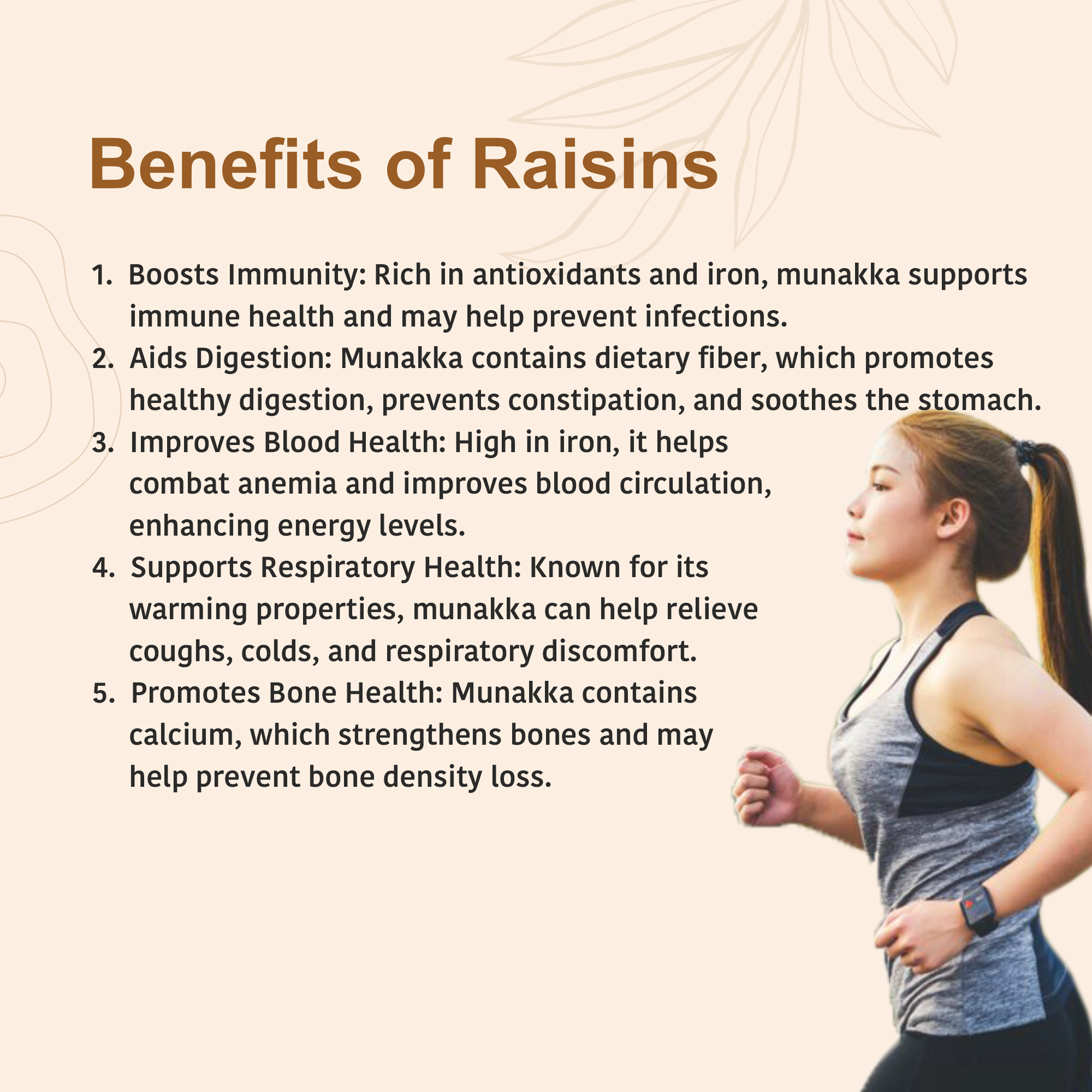 - Rich in Iron: These Munaka raisins are a good source of iron, which can help improve hemoglobin levels and prevent iron deficiency.