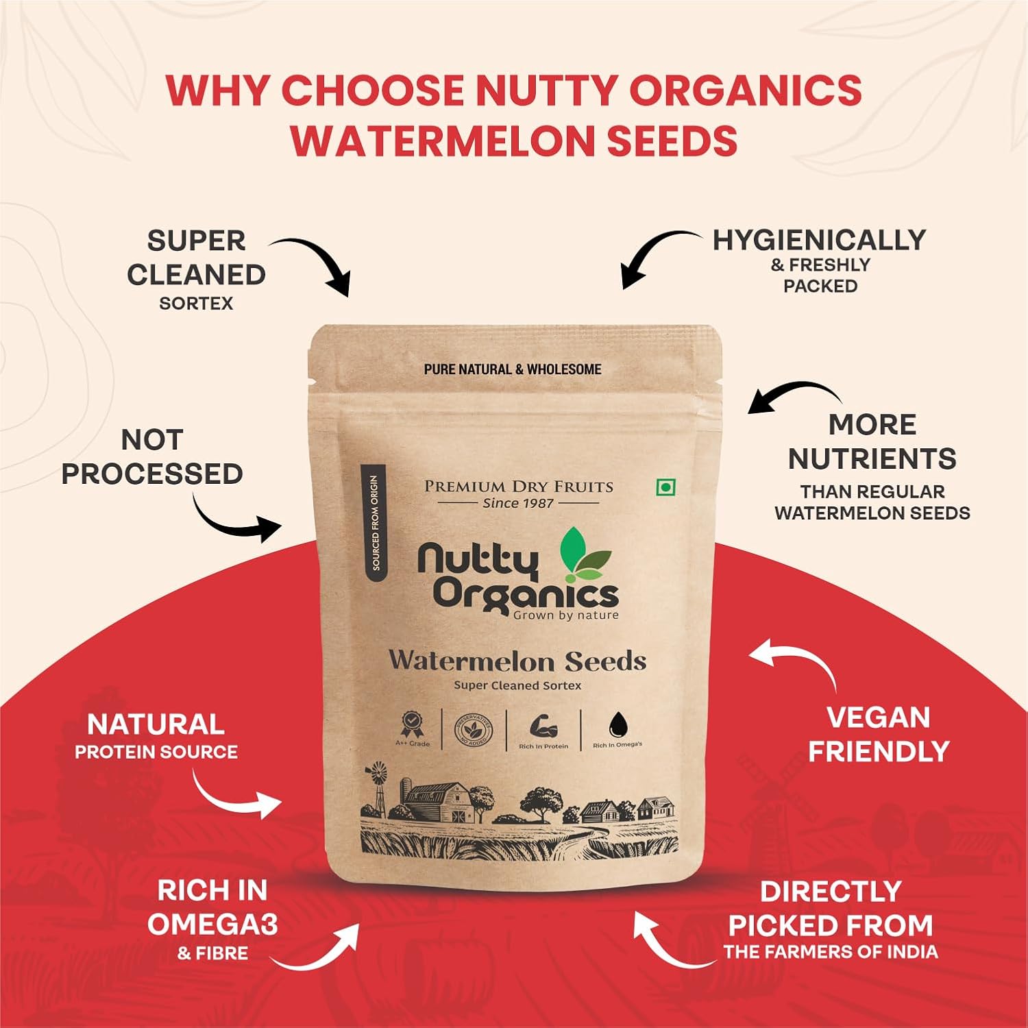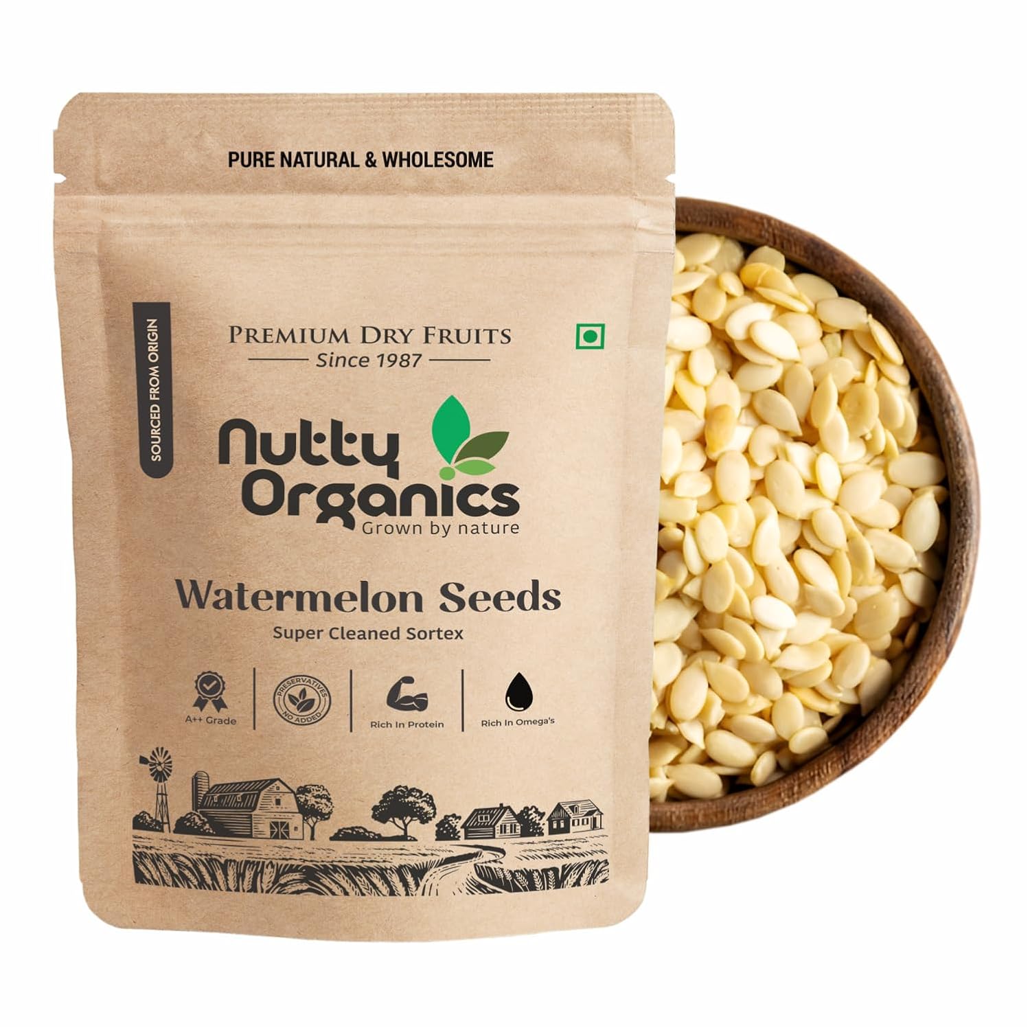 NUTTY ORGANICS Watermelon seeds are a good source of dietary fiber, which can help improve digestion, promote regular bowel movements, and prevent constipation. Fiber also supports a healthy gut microbiome and helps maintain overall digestive health. The vitamin E content in watermelon seeds helps protect the skin from free radicals and oxidative damage, promoting a healthy and youthful complexion. Vitamin E is also known for its role in reducing the appearance of scars and promoting skin healing. With their high protein, fat, and mineral content, watermelon seeds can help provide sustained energy throughout the day, making them a great option for a snack to prevent energy slumps. Watermelon seeds can be eaten raw, roasted, or ground into a powder. Roasting the seeds enhances their flavor and makes them a crunchy addition to salads, smoothies, or trail mixes. They can also be blended into smoothies or incorporated into baked goods.