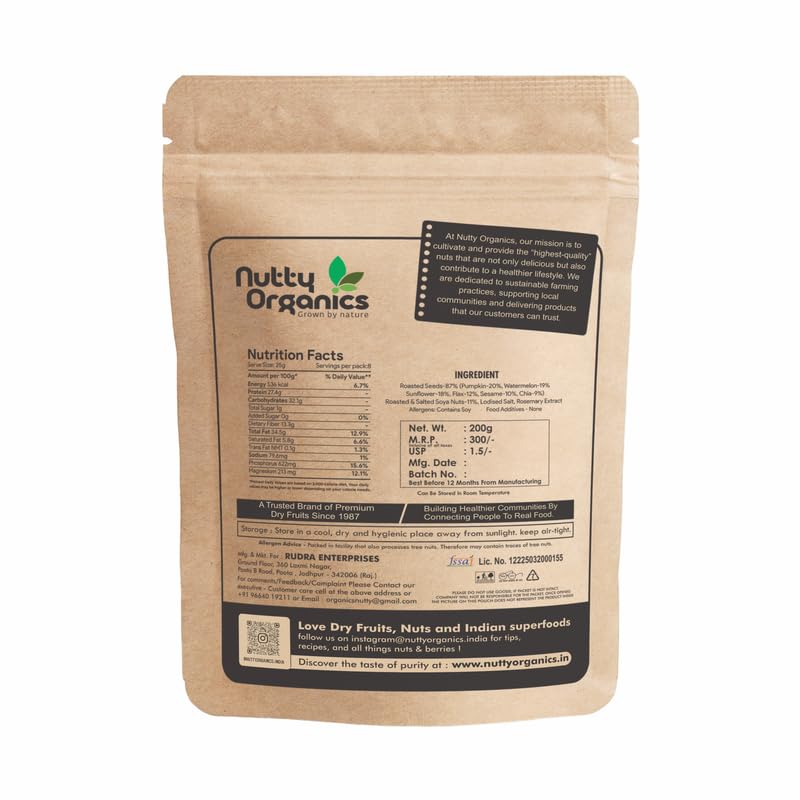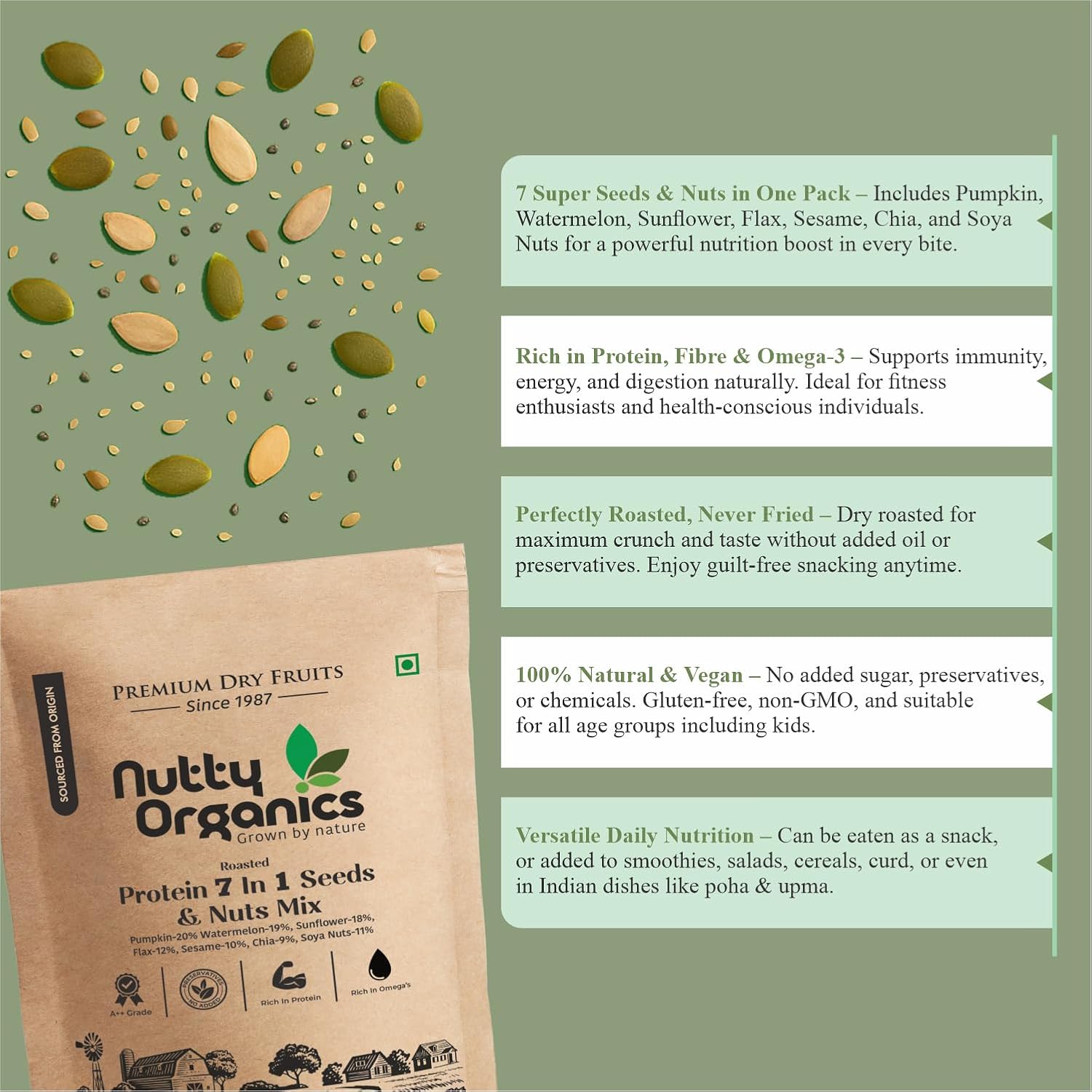 Nutty Organics 7-in-1 Seeds & Nuts Mix 200g and 1 kg| Omega-Rich Superfood | Roasted Pumpkin, Sunflower, Watermelon, Flax, Sesame, Chia & Soya | Healthy Snack | Vegan & Gluten-Free