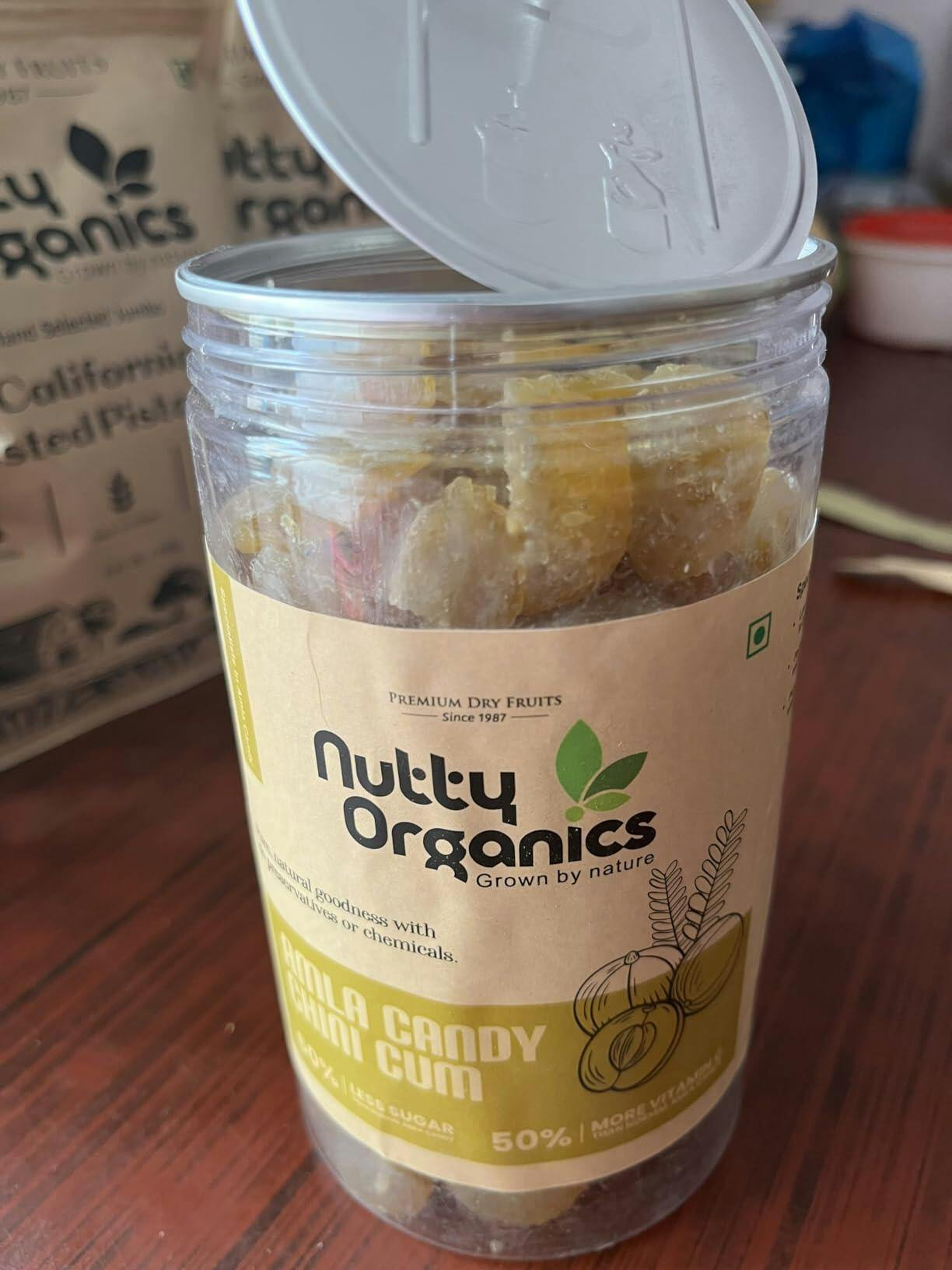 Discover the perfect combination of health and flavor with NUTTY ORGANICS Amla Candy Chini Cum, crafted from the finest quality amla (Indian gooseberry). Packed with natural antioxidants and an abundance of Vitamin C, this candy helps strengthen immunity, enhance digestion, and boost energy levels. The reduced sugar content ensures a healthier snacking option, making it suitable for anyone who wants to enjoy a sweet yet tangy treat without guilt. Whether you enjoy it after meals as a digestive aid or throughout the day as a refreshing snack, this amla candy is designed to complement your healthy lifestyle. Packed in a resealable 180g bag, it ensures long-lasting freshness and convenience, making it perfect for travel, work, or home. Indulge in this delicious blend of tanginess and sweetness while reaping the benefits of natural, wholesome ingredients.