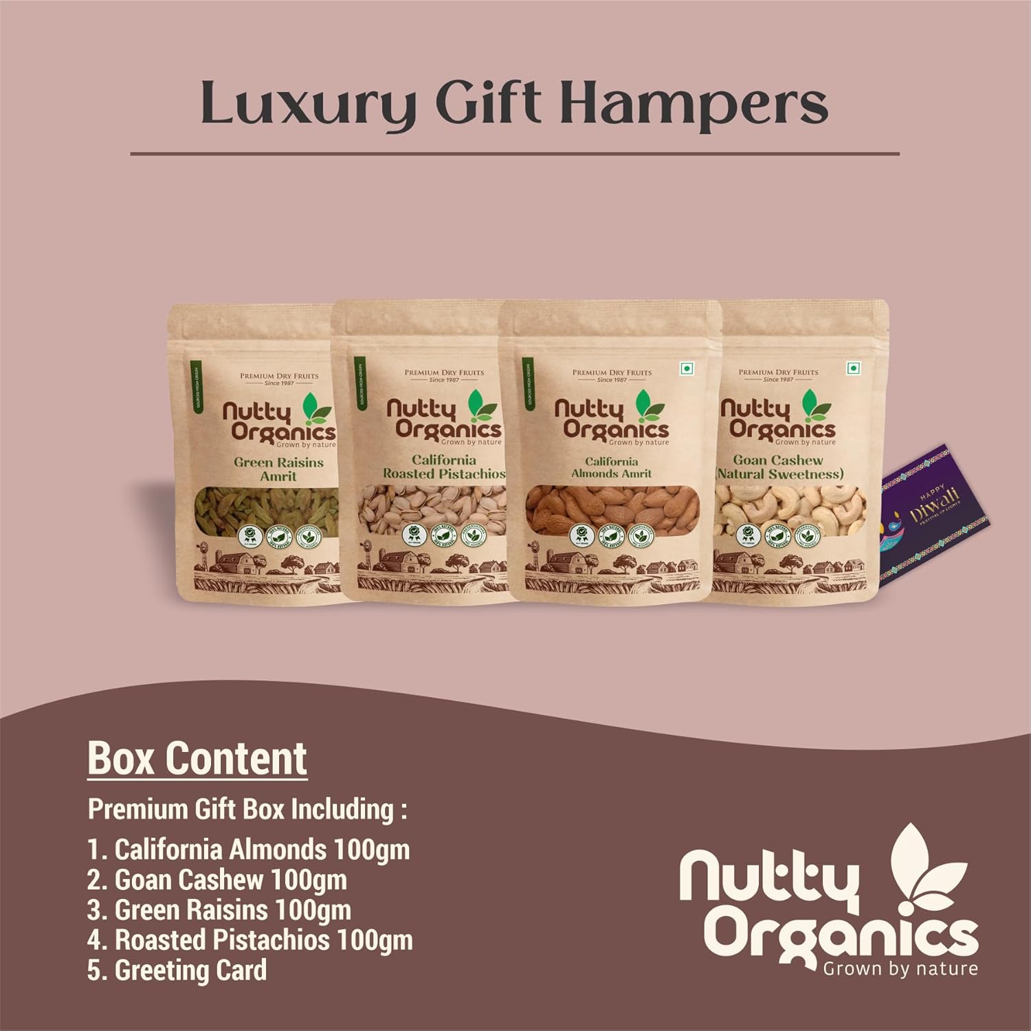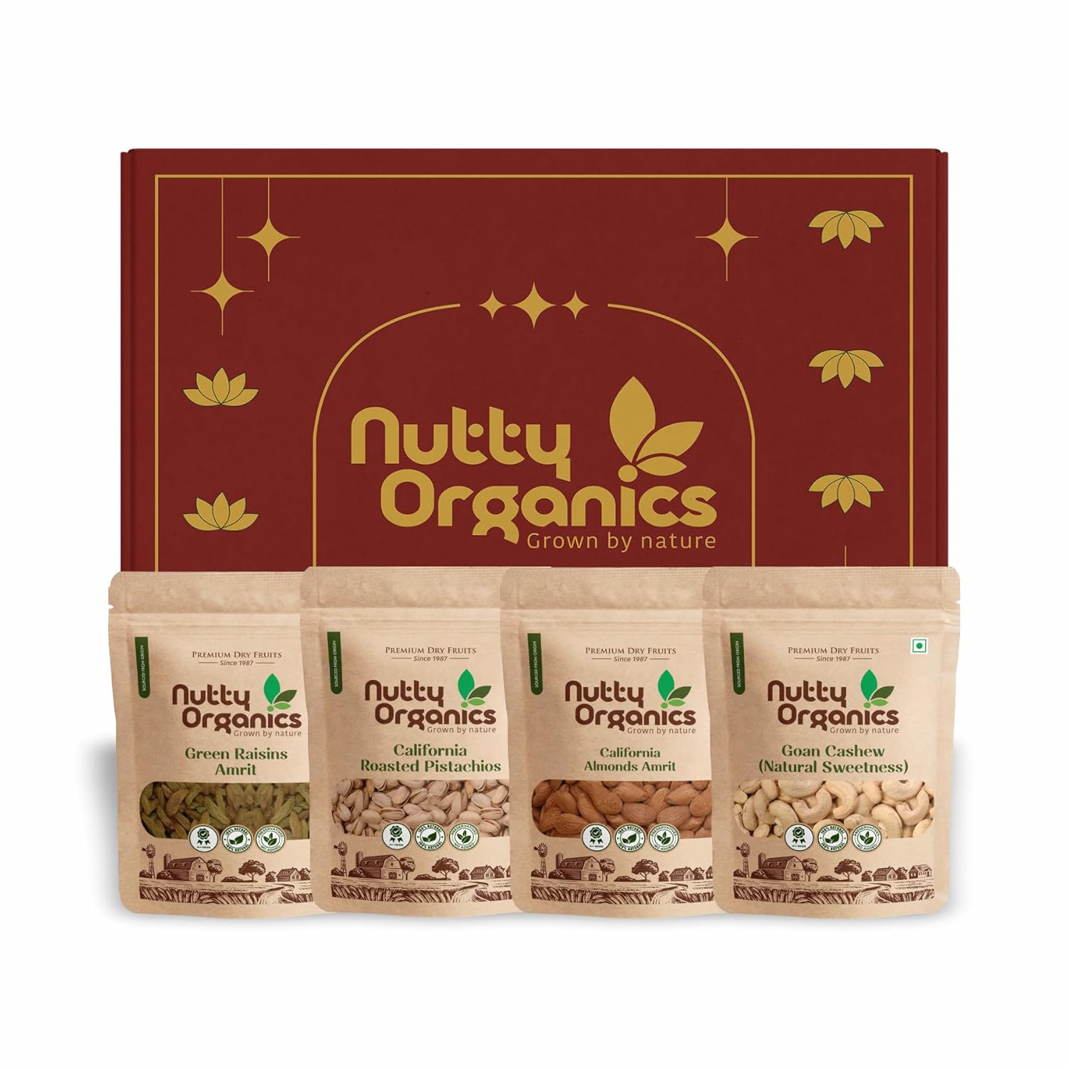 Nutty Organics Gift Box: Cashew · Almonds · Raisins · Pistachio — 100g Each (400g)
