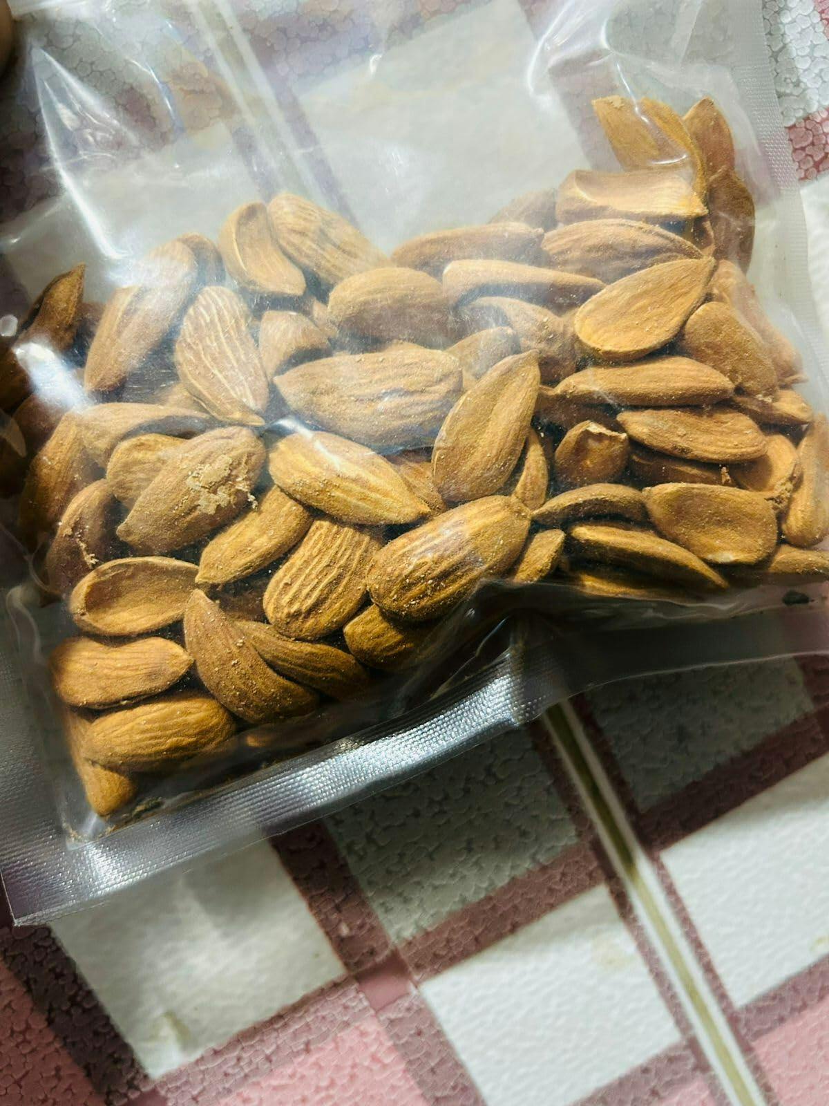 It is actually pure Mamra almonds and i have bought this for my boy to make nut powder as it is rich in natural oils and vitamin E and overall quality of almonds is nice smells actually organic